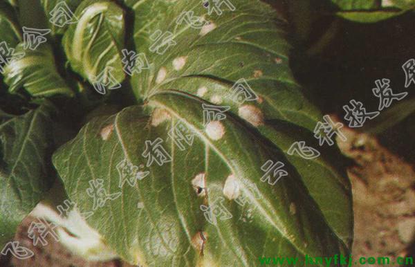 油菜整個(gè)生育期均可被害,病斑在老葉上較多,初在葉上出現(xiàn)灰褐色或黃白色圓形小病斑,后逐漸擴(kuò)大為圓形或近圓形大斑,邊緣帶綠色,中央灰白色至黃白色,病部稍凹陷變薄,易于破裂,濕度大時(shí)病斑背面產(chǎn)生淺灰色霉?fàn)钗铮“咧睆?.3~1mm,有時(shí)有輪紋。嚴(yán)重時(shí)病斑相互聯(lián)合形成大斑,致葉片枯死。